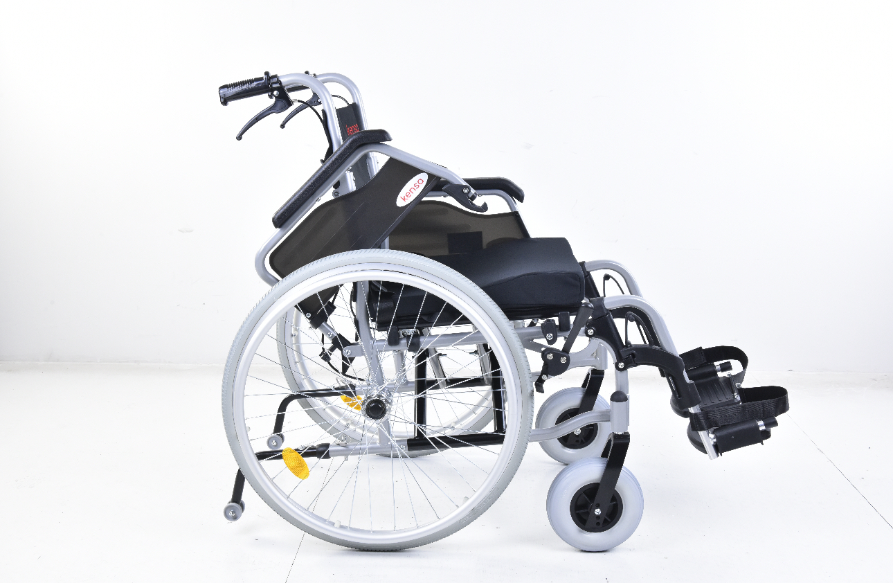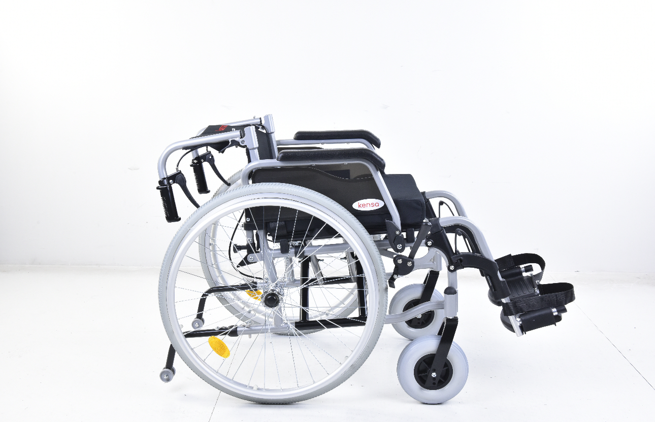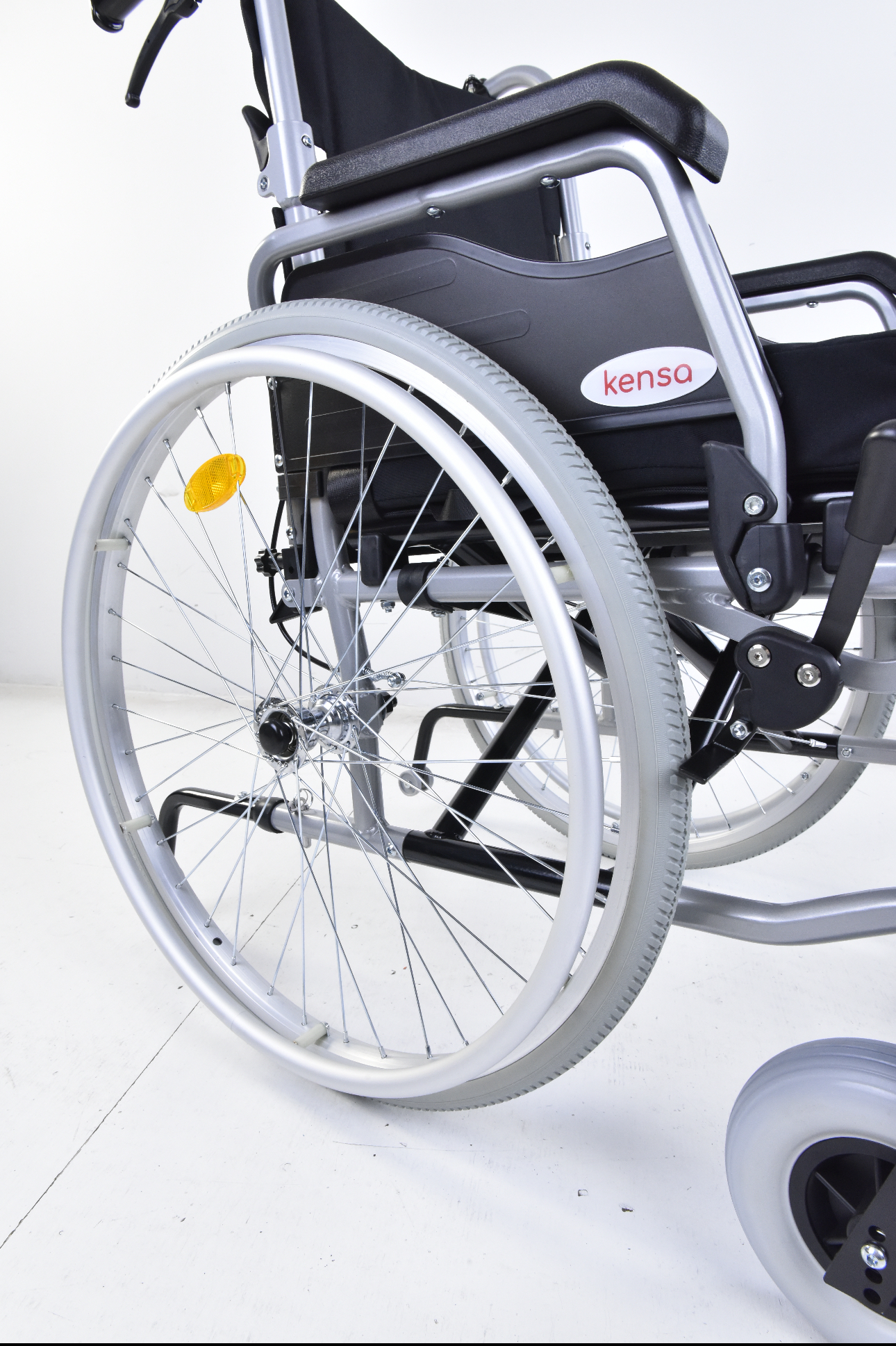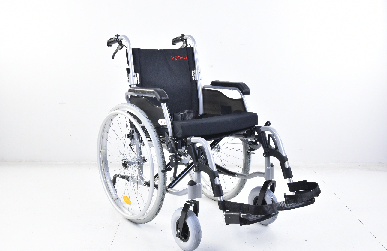 Kensa K-170 18” Manuel Tekerlekli Sandalye, dayanıklı alüminyum çerçevesi ve ergonomik tasarımıyla günlük kullanım için ideal bir modeldir.