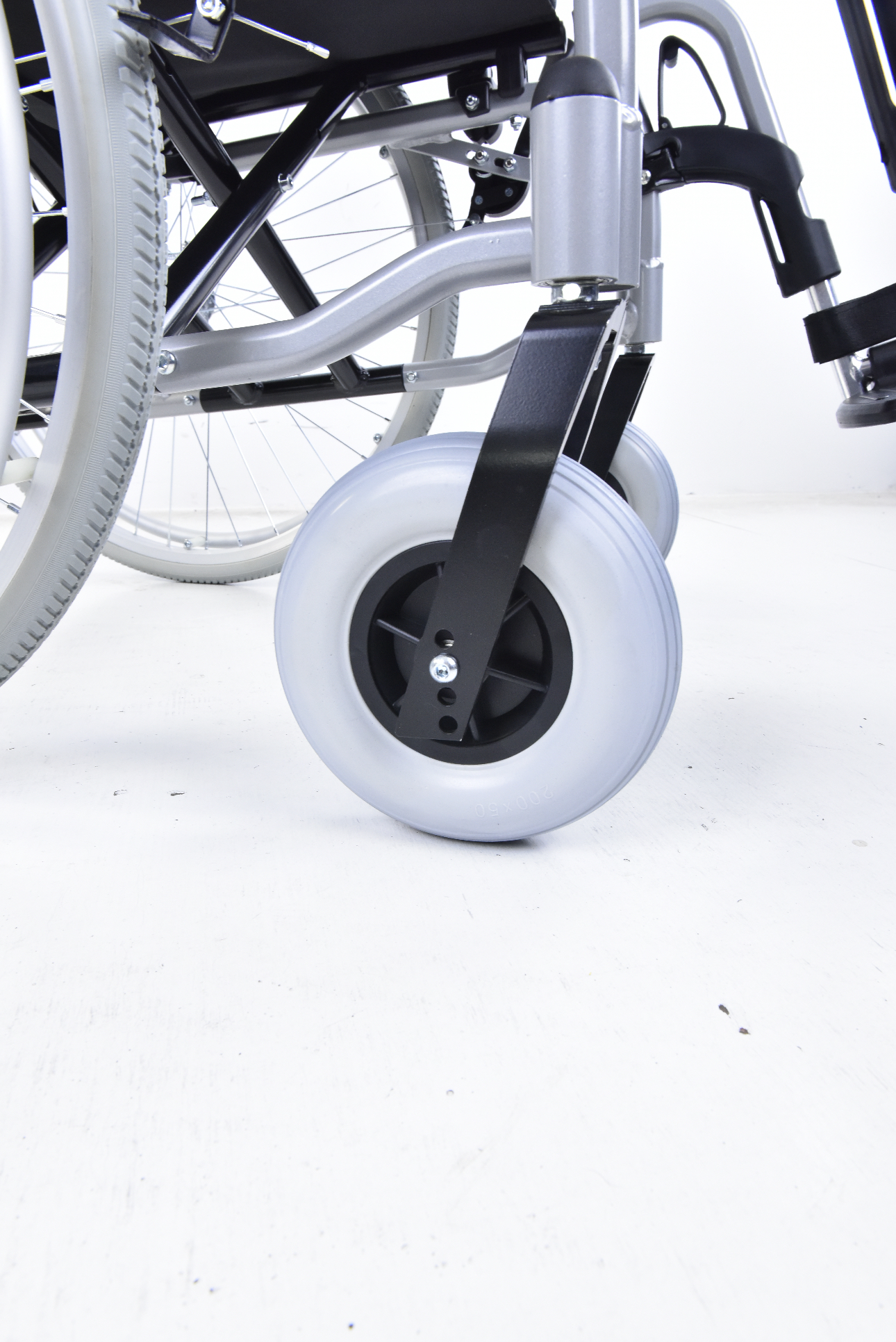 Refakatçi fren sistemi, anti-tipper güvenlik tekerlekleri ve hızlı sökülebilen 18 inç arka tekerlekleri sayesinde hem kullanıcı hem de refakatçi için maksimum güvenlik sağlar.
