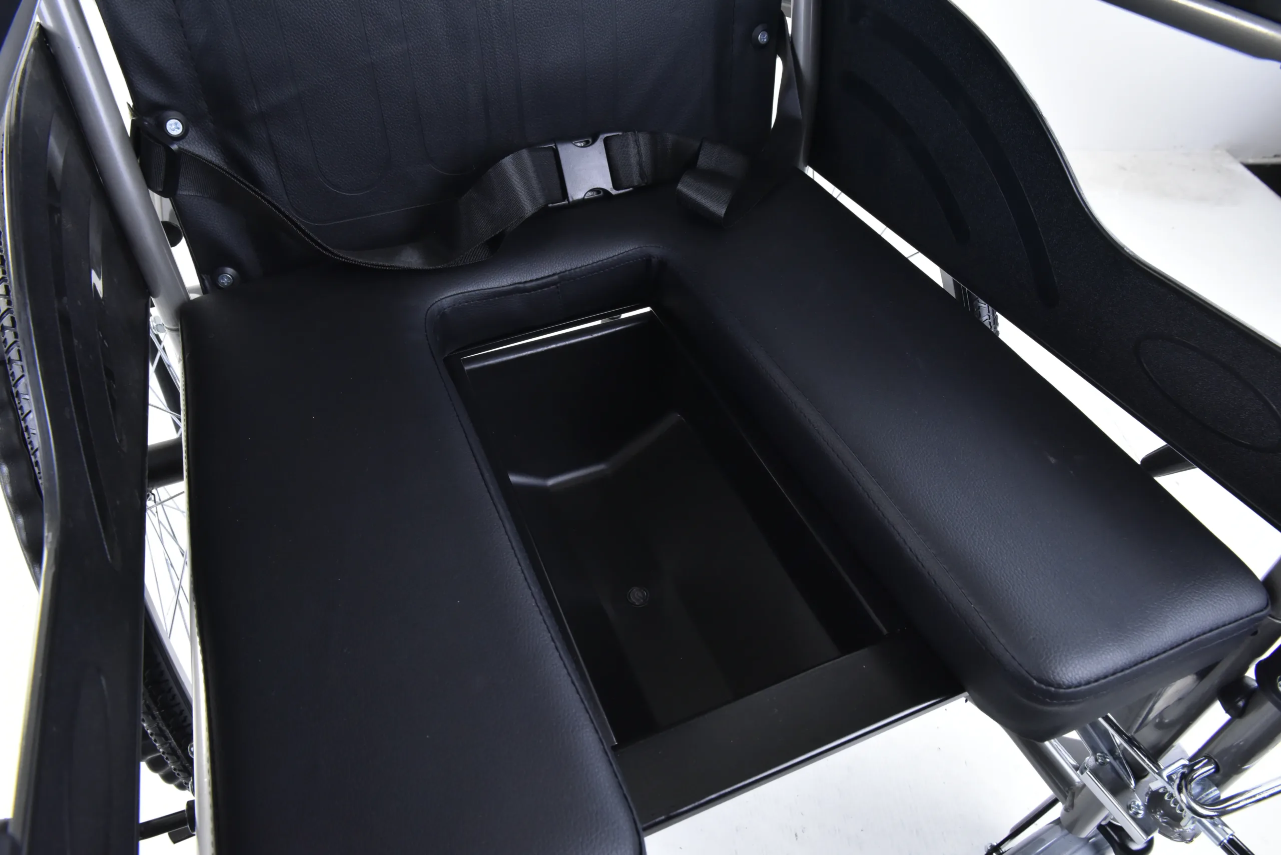 Tam yatar sırtlık, çıkarılabilir baş destek, yükseltilebilir ayaklık ve entegre tuvalet sistemi sayesinde hem kullanıcı hem de refakatçi için kolay kullanım sağlar.